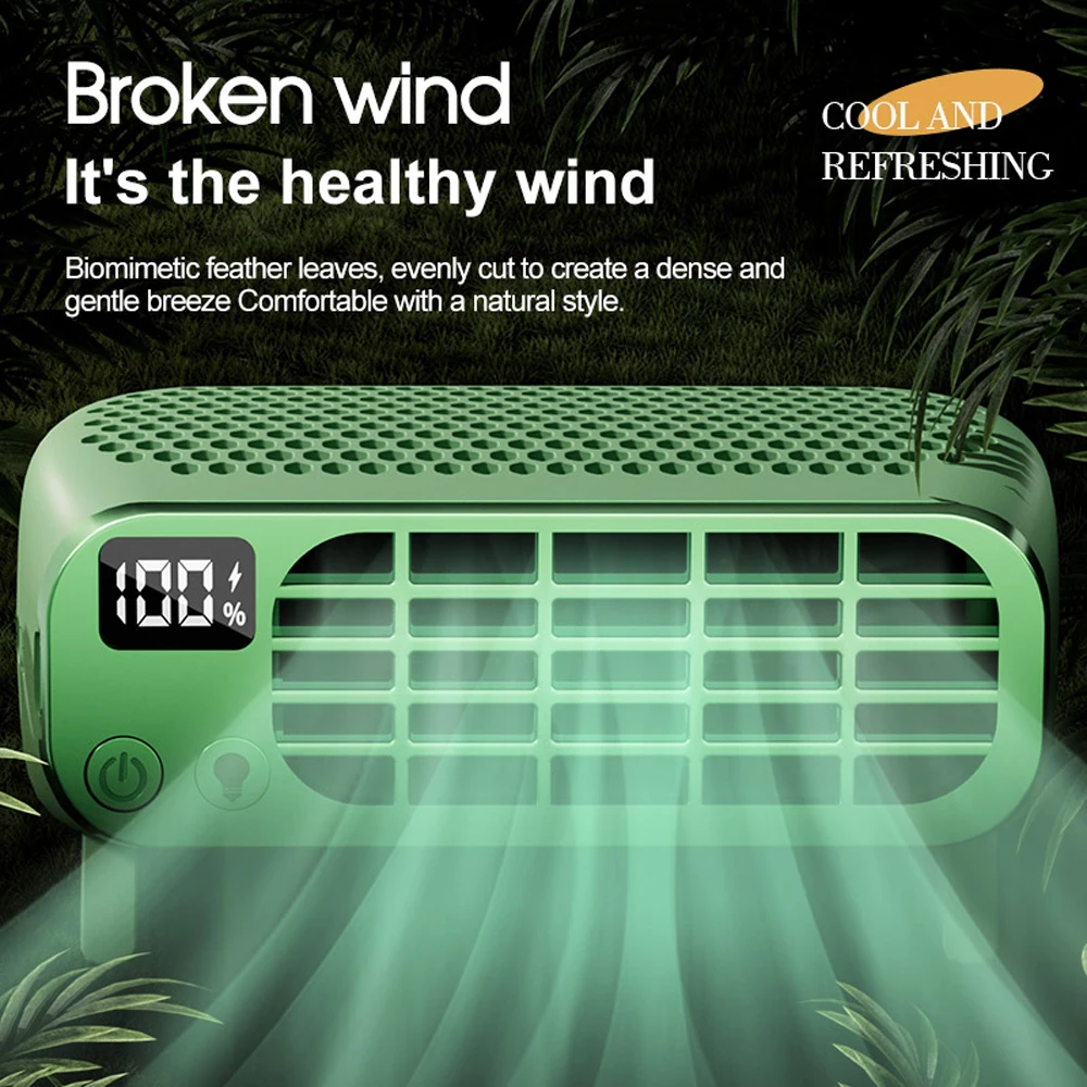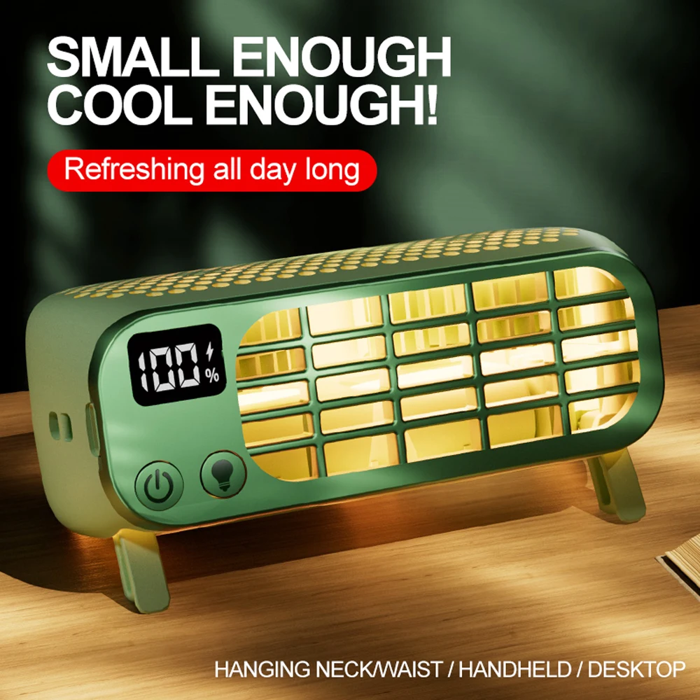 Long-lasting Battery: Built-in 2400mAh battery with low power consumption, this fan offers a long-lasting battery life. The LED display screen shows real-time battery level, wind speed settings, and light modes for added convenience.