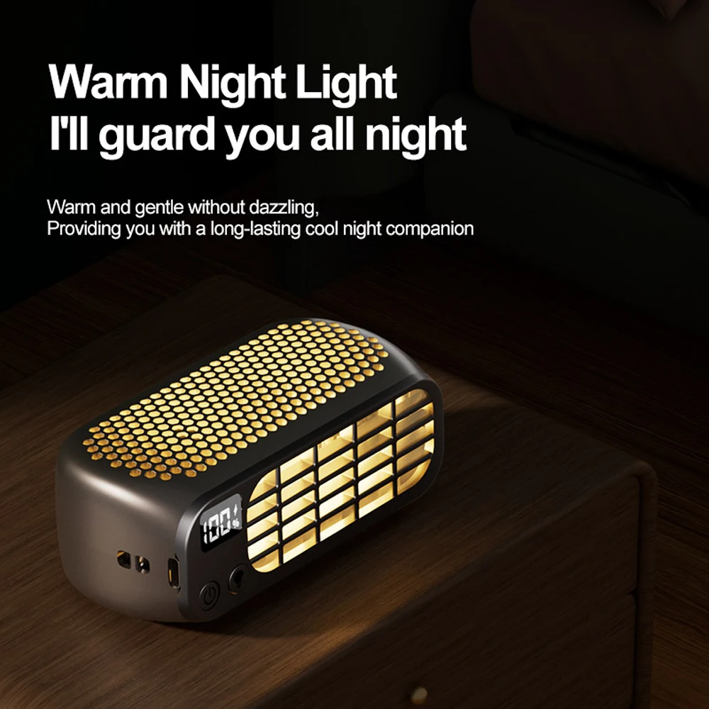 Experience powerful and cool airflow with the Portable Bladeless Fan. Featuring dual-core dual-engine drive and wide-angle airflow, this fan offers 5 adjustable wind speeds and a soft night light option. With a long-lasting battery and versatile usage modes, including handheld, desktop, and clip-on options, this fan is perfect for home, office, camping, and travel. Compact, lightweight, and long lasting, it is your perfect companions for staying cool and comfortable wherever you go.