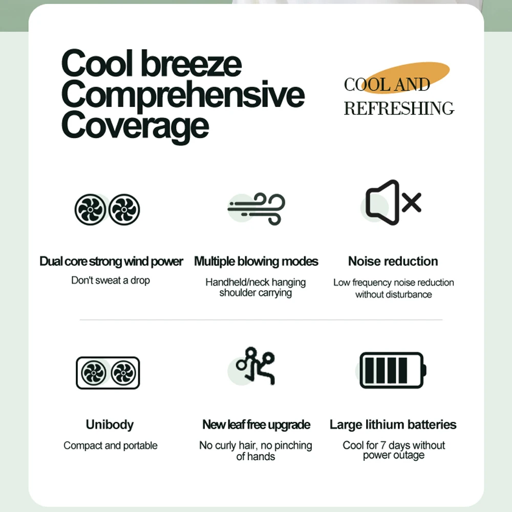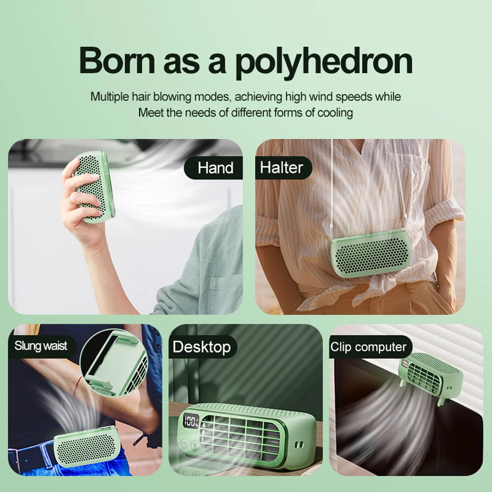 Versatile and Convenient: This bladeless fan supports multiple blowing modes, including handheld, waist-hangings, neck-hangings, desktop, clip-on to a computer, or clip-on to a drawing board, suitable for various usage scenarios.