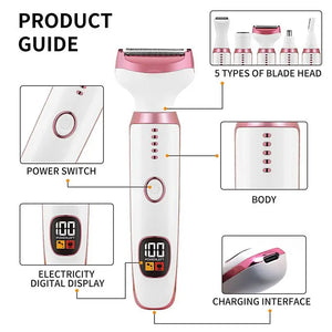 4.Easy Maintenance: Our Electric Shaver for Women boasts 5 replaceable cutters made of stainless steel, allowing you to trim hair in various areas all at once. Waterproof and easy to clean with the included brush, it maximizes your time management routine